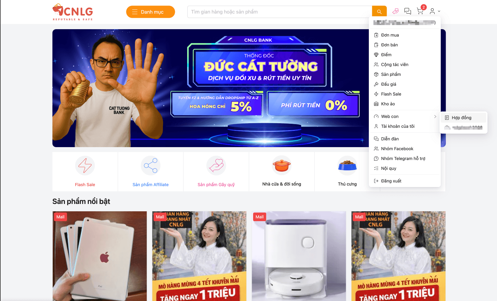- Truy cập https://cungnhaulamgiau.vn/tai-khoan/web-con/hop-dong hoặc như ảnh dưới