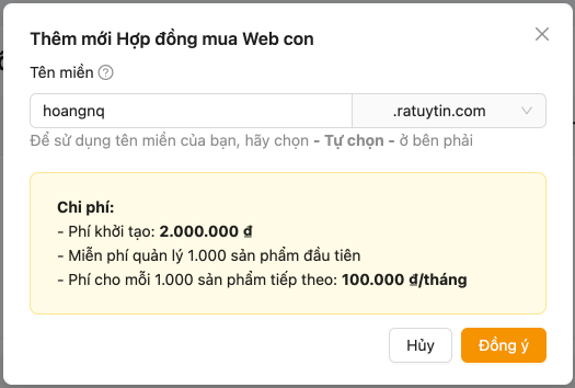 Buớc 1: Tạo hợp đồng mua Web con
